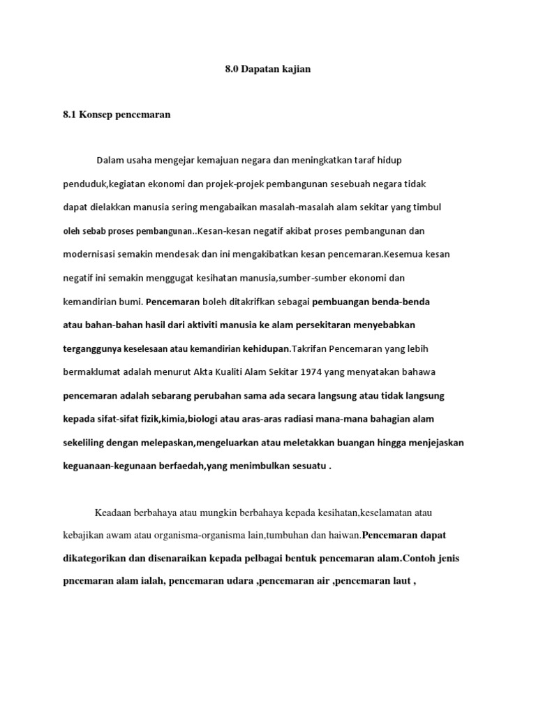 indek from www.geocities.ws Terdapat pelbagai cara pencemaran boleh berlaku. 40%(5)40% found this document useful (5 votes). Doc definisi pencemaran nurul syazwani che zulkifli academia edu. Faktor punca kesan & langkah. Penggunaan bahan api fosil yang tidak terkawal. Akibat meminum air yang tercemar, manusia akan dijangkiti penyakit menular, penyakit ginjal, artritis. Tanah menjadi tidak subur dan menurun kualitasnya. Perkataan alam sekitar atau dalam bahasa inggeris disebut invironment membawa maksud keadaan sekeliling atau lingkungan.