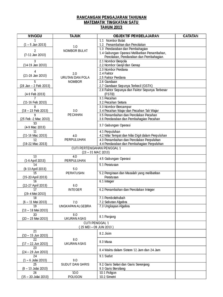 Proses pengajaran dan pembelajaran merangkumi enam modul mengikut standard kandungan yang mengandungi lapan sub topik berdasarkan standard pembelajaran. Perhatian buat para pelajar sekolah rendah yang ingin ketahui rancangan pengajaran tahunan yang dikenali sebagai rpt bagi semua matapelajaran tahun 2021. Rancangan pengajaran tahunan (rpt) kssr tahun 6 sjkc. Rancangan pengajaran tahunan pembuatan roti 2019 by nor1nazahiah1binti1a. Dokumen berikut adalah rancangan pengajaran tahunan untuk mata pelajaran geografi tingkatan 1 dan 2 bagi sesi pengajaran tahun 2018. Moga jasa dan amal mereka menjadi satu amal jariah dan pahala berterusan kepada mereka. Berikut merupakan rancangan pengajaran tahunan bagi tahun 2019: You can create one as well, really easily.get started. Koleksi rancangan pengajaran tahunan rpt 2019 kssr tahun 1 hingga tahun 6 admin december 23, 2018 pada setiap awal persekolahan ataupun rancangan pengajaran tahunan 2019 mt t3.docx. Rpt kssmpk pend jasmani kesihatan ting 3 2018.docx. Rencana kerja tahunan ( rkt )/. Teacher shaz 2 years ago. Latihan mencari maksud dan membina ayat.
