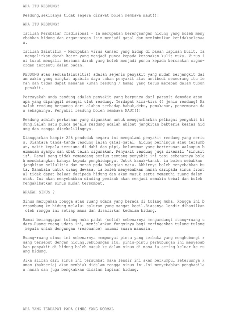 Cara takmau bagi muka naik jerawat rawat resdung. Masalah resdung berpunca dari alahan terhadap habuk,debu, pemakanan, pencemaran dan sebagainya. Elken mesin air ro feedback norisah (ketua jururawat) sembuh dari sakit buah pinggang. Resdung boleh menyebabkan mata kita menjadi bengkak dan muka akan nampak sembab. Dari mana datang ulat tu? Resdung sampai keluar ulat dari hidung? Saya ada buat resdung, memang keluar ulat. Kaedah pengubatan secara tradisional kita perlu faham kaedah mereka sama ada mengunakan 'bahan rawatan' yang membuktikan ulat resdung keluar. Jika ini kurang cocok silahkan pilih. Cara takmau bagi muka naik jerawat & rawat resdung. Ulat resdung keluar dari muka treatment face . Terus rasa lega lepas rawatan. Cara hilangkan resdung guna bahan di rumah.