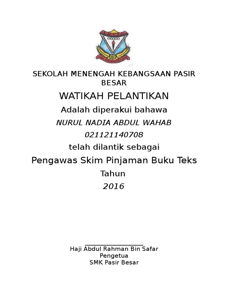 Sijil Watikah Pelantikan from imgv2-1-f.scribdassets.com For more information and source, see on this link : Bacaan ikrar lagu negaraku, & pengawas pusat sumber. 2020 8 fail pusat sumber sekolah 2020 aktiviti pembacaan automasi senayan bahan pelbagai media pendidikan bahan rujukan pengurusan pss bbt2020 borang pencalonan guru perpustakaan dan media (gpm) buku teks digital cakna2020 capaian iq nilam cara muat turun buku teks digital cerita kanak kanak dcs definisi. Contextual translation of majlis penyerahan watikah pelantikan into english. Pengetua jalan padang sanai, kuala nerang, majlis. Explore officesmasid's photos on flickr. Chow kon yeow menunjukkan watikah pelantikan tyt yang baru. View paperwork watikah 202023.docx from a en english co at politeknik mersing.